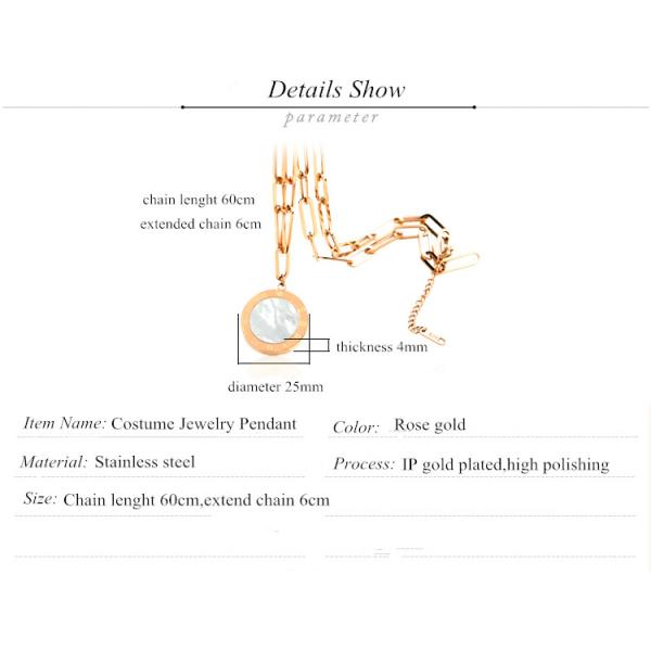 Steel Square Rose Gold Sweater Chain Necklace, Double-sided shell sweater decorative necklace Images |